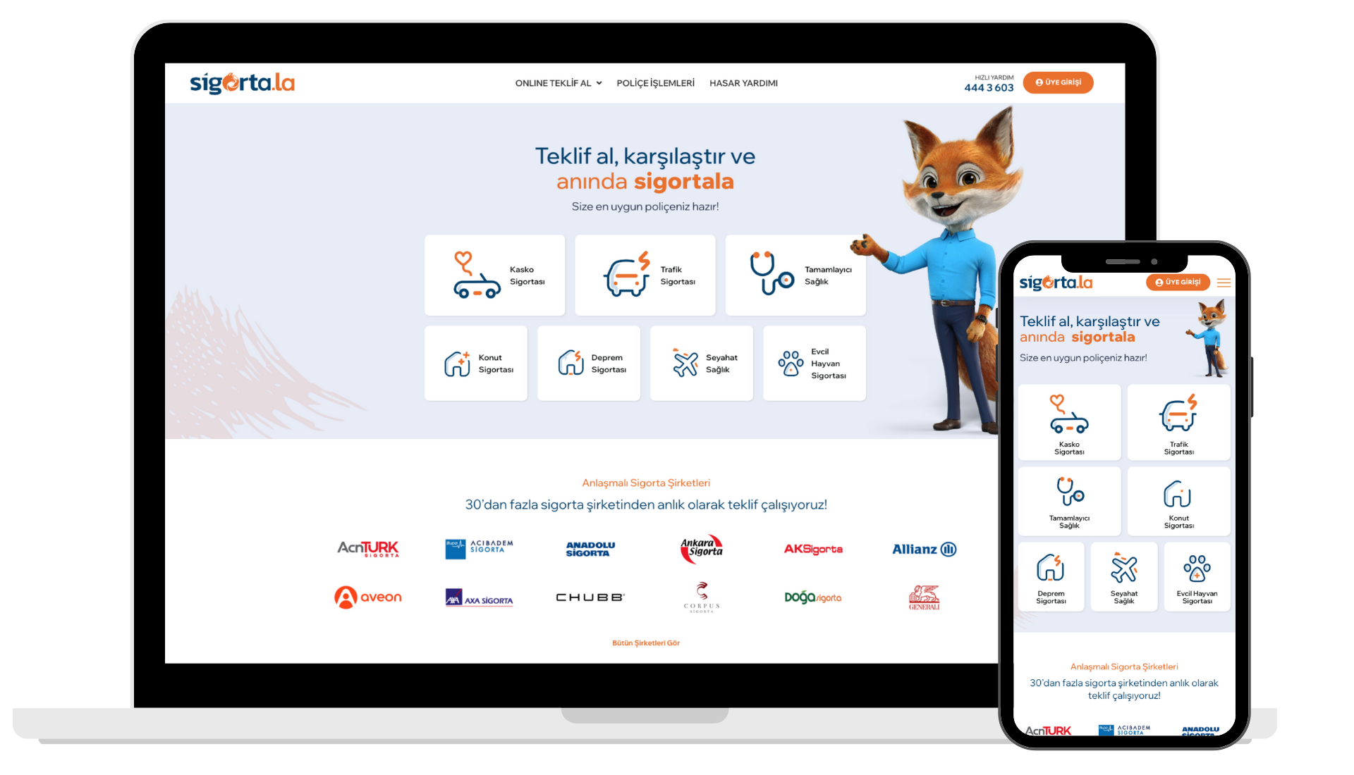 Bireysel sigortacılık çözümlerinde güvenilir iş ortağımız Sigorta.la ile ihtiyacınız olan tüm sigorta işlemlerini hızlı ve kolay bir şekilde gerçekleştirebilirsiniz. Sigorta.la, kasko, trafik sigortası, tamamlayıcı sağlık sigortası (TSS), seyahat sağlık sigortası, konut sigortası ve dask gibi birçok sigorta seçeneğiyle size özel çözümler sunar.